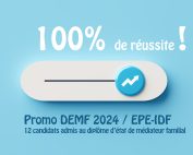 Nos félicitations les plus chaleureuses aux nouveaux diplômés de l’EPE-IDF ! Nos 12 candidats de la promo 2024 / formation de médiateur familial ont obtenu leur diplôme d'état après avoir travaillé sans relâche ! De [...]