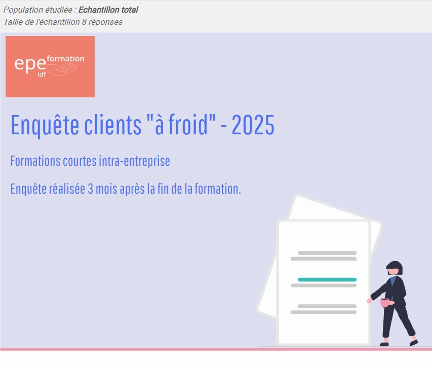 Retrouvez ici les résultats de notre enquête de satisfaction réalisée auprès de nos clients trois mois après la fin de chacune de nos formations courtes intra-entreprises en 2025.